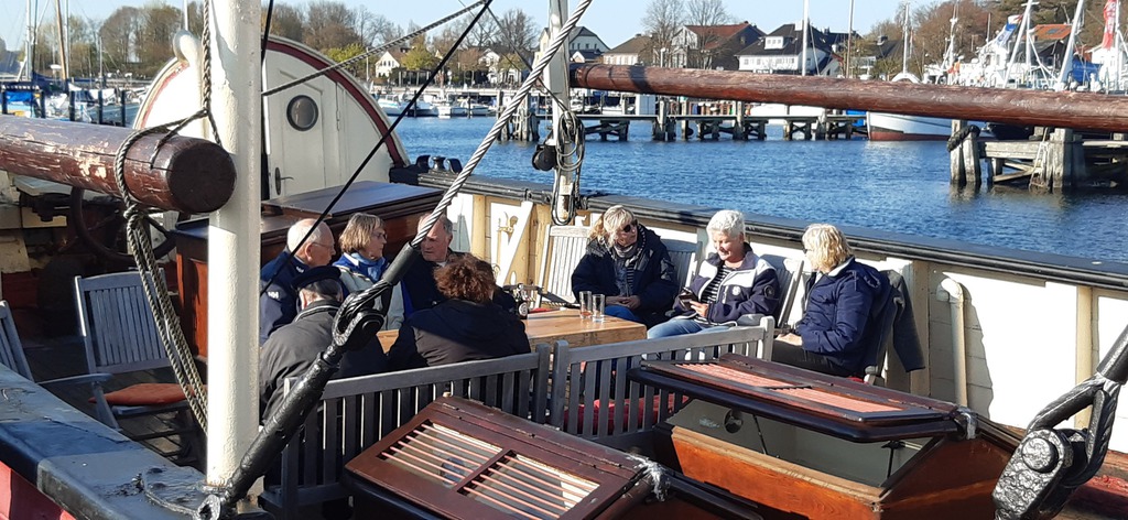 Nach dem Kaffeetrinken an Deck der „Läsö Rende“ bereichert unser Gast Dietrich Onnasch mit einer Vielzahl seiner interessanten Reiseberichte unser Treffen.