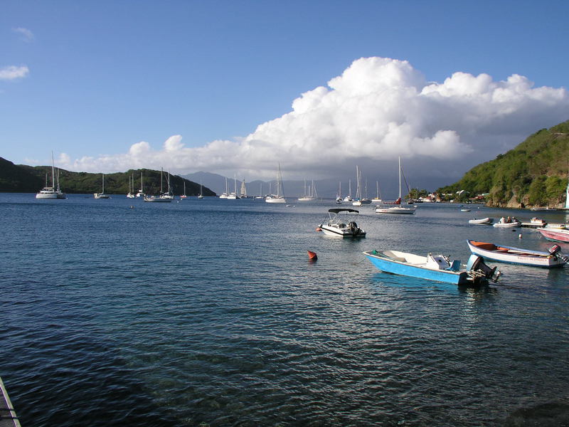 Am nächsten Morgen geht es zu den heiligen Inseln, Iles de Saintes, wo in zwei traumhaften Buchten viele Bojen ausliegen, an denen wir festmachen. Dunkle Wolken, Regen und viel Wind passen so gar