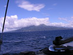 Der Mount Pele zeigt nur einmal seinen Gipfel, ansonsten bleibt er versteckt unter einem Wolkenmantel. Weiter geht es längs der Insel Martinique nach Grand Anse d'Arlet. Dort treffen wir die Cheri
