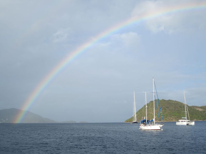 In der Ankerbucht von Portsmouth / Dominica kam schon früh Unruhe auf. Die Yachten des TYvD hatten nach Plan ein kurzes Ziel, die Hauptstadt von Dominica, Roseau. Der einsetzende Regen machte dem im Hinterland liegenden Regenwald alle Ehre, im Süden kam aber blauer Himmel durch. Als vorletzte Yacht „Rarzon, mit der Crew Irmtraud, Heino, Andrea, Hans, Renate, Horst, Gerd und Fabian lichten wir um 6:50 Uhr den Anker und bald waren die Segel gesetzt. Mit traumhaftem Passatwind rauschten wir die Westküste Dominicas entlang, bald war Roseau in Sicht. Von den anderen Yachten hörten wir, dass das gute Segelwetter ausgenutzt werden sollte, mit neuem Ziel St. Pierre auf Martinique. Durch die frühe Zeit entschloss sich auch unser Skipper dazu, Martinique anzulaufen, allerdings mit dem letzten Zwischenaufenthalt auf Dominica. Südlich von Roseau liegt die Champagne – Bucht, ein Naturwunder. Aus einer Unterwasser – Felsspalte sprudelt Wasser hervor wie in einem hochwertigen Champagnerglas. Diese Luftperlen locken die Fische an wie ein Scheinwerfer nachts die Motten. Eine Schnorchel – Exkursion war daher angesagt. Nach wenigen Metern erschien ein riesiger Stachelrochen, danach unzählige karibische Fische, es bietet sich der Anblick wie in einem riesigen Aquarium. Unsere Frauen sind auf der Reise noch nie so häufig geknutscht worden, die Neugier der Fische kannte keine Grenzen. Nachdem wir dieses Schauspiel ausreichend genossen hatten, verabschiedeten wir uns standesgemäß mit einem Glas Champagner aus der Bucht und von der Insel Dominica. Vor uns lagen 16 sm Atlantik, die wir mit einer Rauschefahrt bis 9 Knoten bei einer Wellenhöhe bis 3,0 m hinter uns gebracht haben. Um 16:15 Uhr erreichten wir Martinique. Vereinbart war die Bucht von Saint Pierre. Wir fanden aber etwas nördlich von dieser ehemaligen Hauptstadt Martiniques, die 1902 beim Vulkanausbruch des Mont Perlèe untergegangen war, eine traumhafte Ankerbucht, an der wir nicht vorbeifahren konnten. Der Fischreichtum war enorm, an den Felsen sammelten sich durch das vorbeiströmende Atlantikwasser viele Fischarten, wobei die kleinen, bunten Fische überwiegten. Der Tag wurde durch ein leckeres Grillgericht (ohne Fisch) beendet, Höhepunkt dabei war ein Mond – Regenbogen, der sich über die Bucht spannte.
