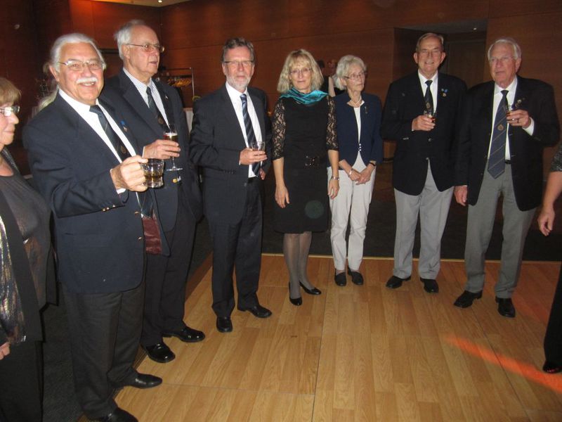 Um Mitternacht wurden wir alle vom Commodore gebeten, auf die Tanzfläche zu kommen. Was jetzt wohl kommt, haben da viele gedacht. Ich auch. Wir wurden an unseren ersten Commodore Karl Heinz Bielenberg erinnert, und wie er immer sein Glas fest hielt, wenn er wieder ein Glas Whisky in der Hand hatte. Wer wusste das noch so genau – wie sah das aus: der „Commodore Griff“ - Daumen und kleiner Finger, und dazwischen das halb volle Glas. So haben wir dann unseren Schluck zu uns genommen. Nur die Männer, die Damen bekamen Sherry. Und es kam noch eine, und dann noch eine, alte Geschichte hoch…….Habt Ihr gewusst, dass Karl Heinz zwei Rettungsinseln an Bord hatte ???.... Was soll´s, darüber sprechen wir beim nächsten Herbstfest des TYvD. Und dann können wir uns über noch mehr alte Geschichten freuen.