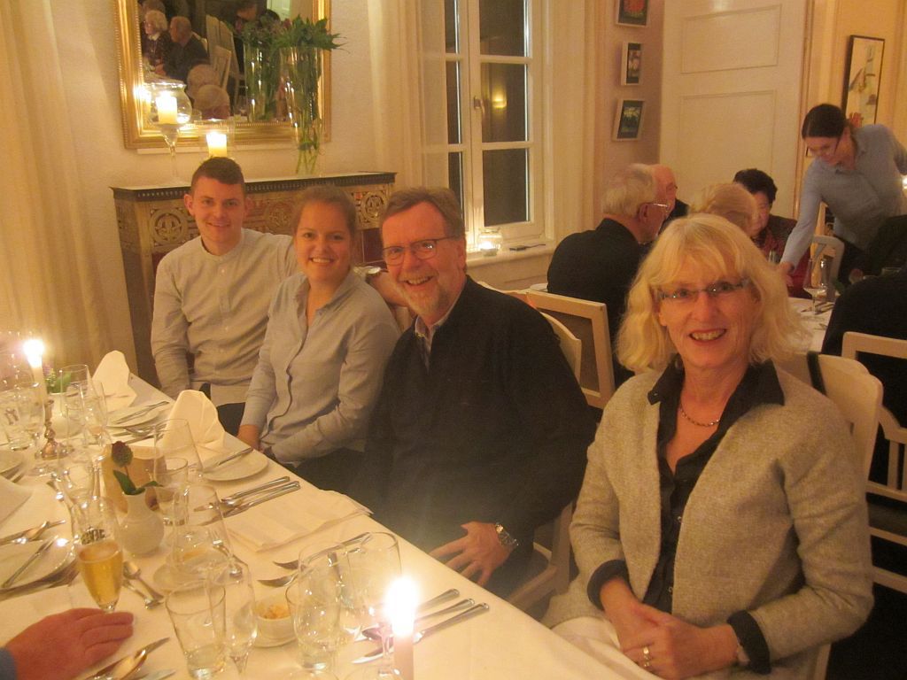 Wir treffen uns mit großem Hallo zum Abendessen in unserem Hotel Behrmann in Hamburgs Nobelviertel Blankenese.