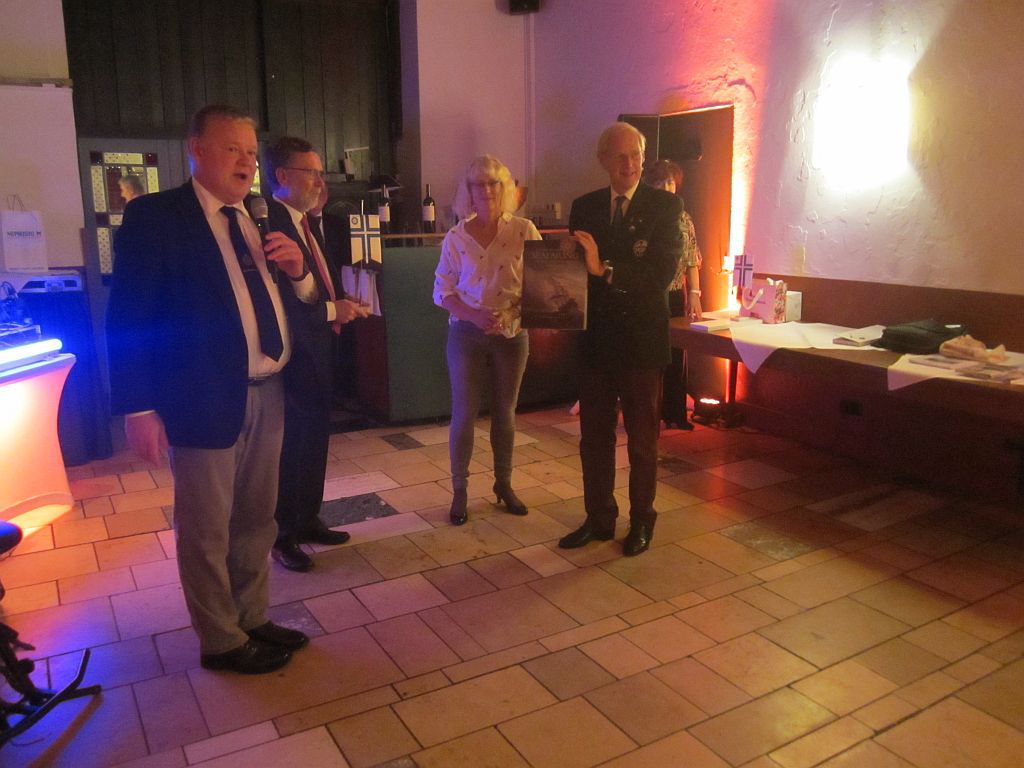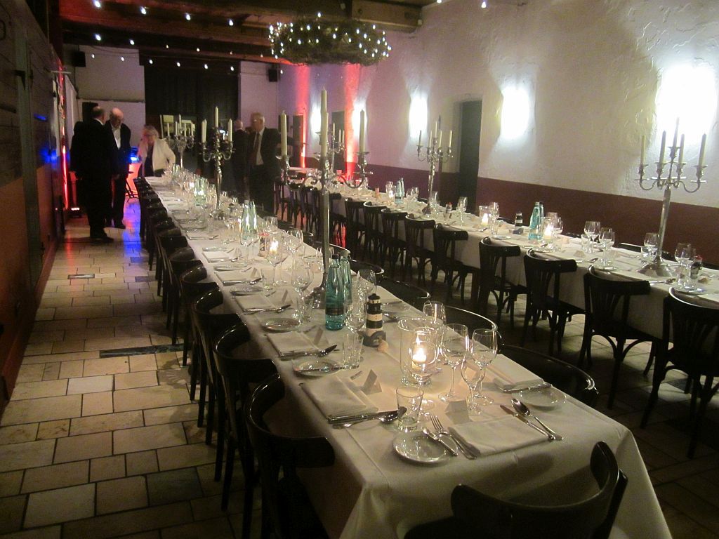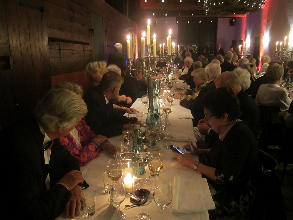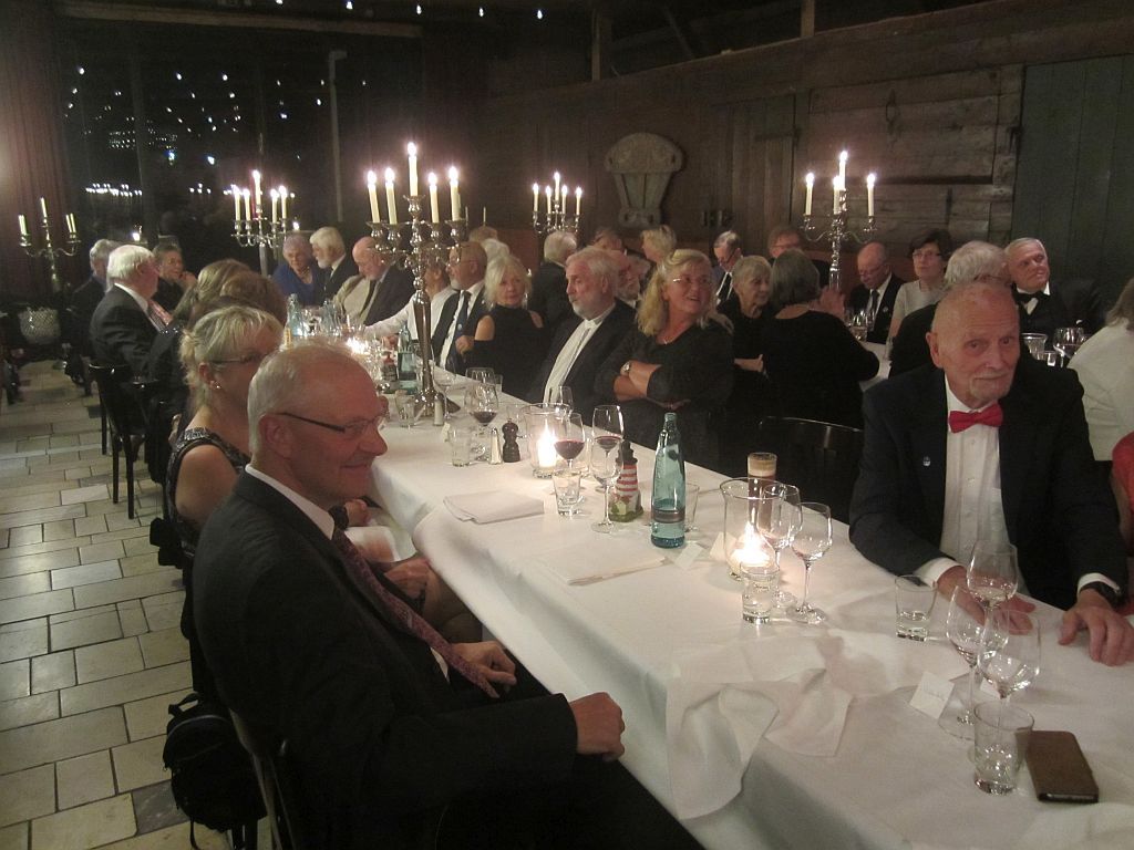 Leider ist es schon zu dunkel, um einen umfassenden Blick auf die schöne Anlage des Röperhofes zu werfen. Der Röperhof ist ähnlich wie das Witthüs ein Reetdachhaus, auf dessen gemütlicher und uriger Tenne wir unseren Galaabend verbringen wollen. Für eine stilvolle Atmosphäre sorgen u.a. viele Kandelaber auf den Tischen. Das Dinner läßt keine Wünsche offen. Zwischen den einzelnen Gängen melden sich die anwesenden Commodores zu Wort. Wir klönen und tanzen bis der Bus kommt und uns zum Aufbruch mahnt.