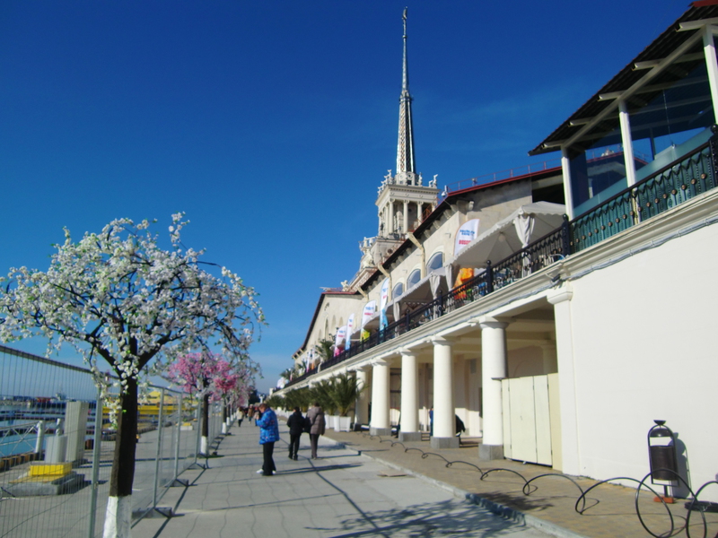 Weiter ging es vom sogenannten Gebirgs-Cluster an den Meeres-Cluster der olympischen Stätten; dorthin, wo die ganzen Hallen und die Fackel stehen und wo die Feier stattfand, direkt am Schwarzen Meer.