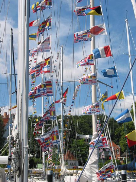 Am Nachmittag des 12. Juli hatten alle Teilnehmer ihre Liegeplätze eingenommen und sich für die Flaggenparade in Schale geworfen. Die ICCY- Fahne wurde dann von der Enkelin eines dänischen Segelkameraden am Flaggenmast gehisst, unser Commodore begrüßte alle Anwesenden recht herzlich und wünschte allen, schöne Tage unter Freunden zu verbringen.