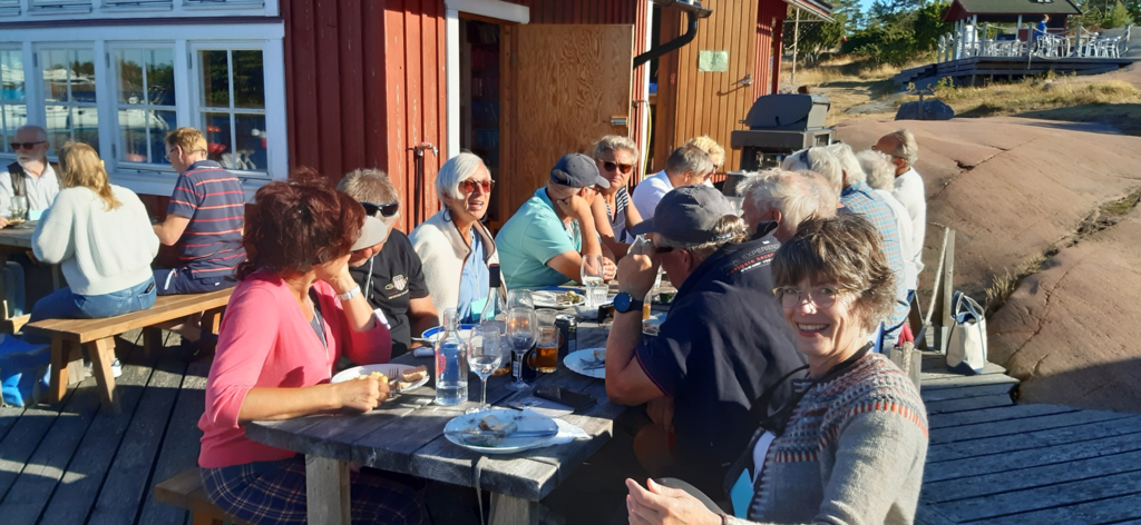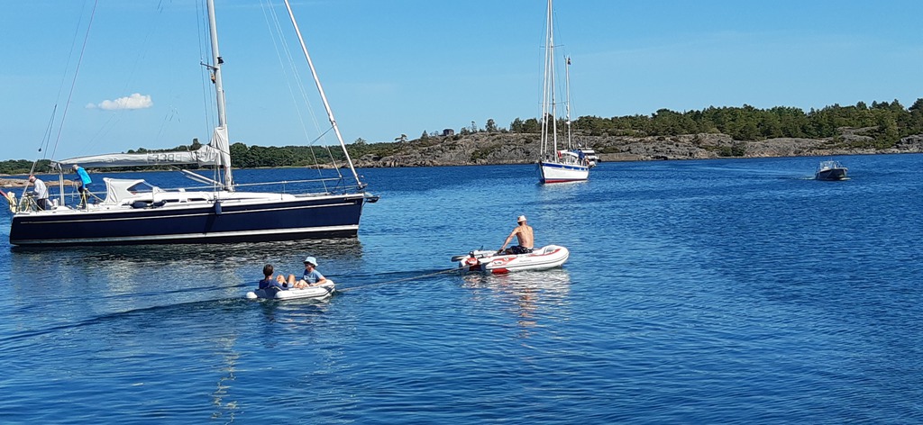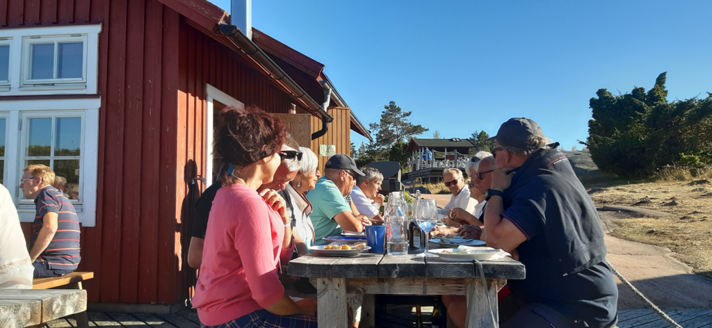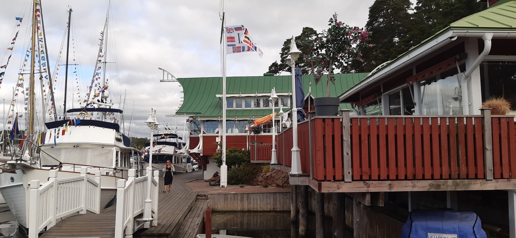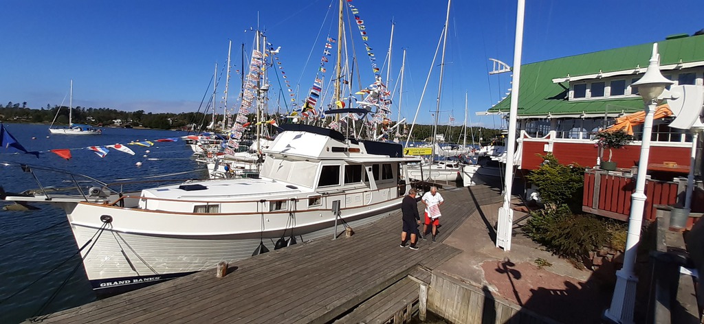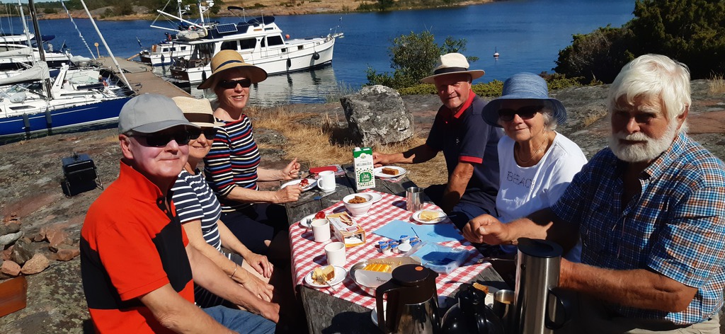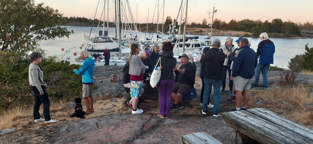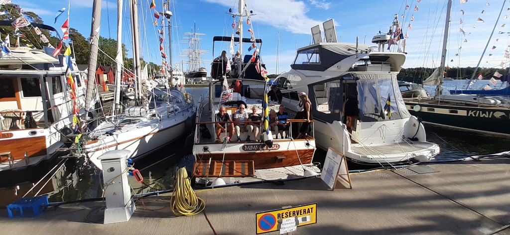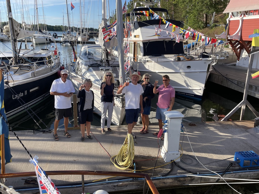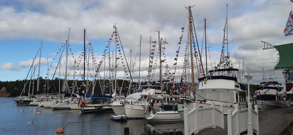Bereits einige Tage vorher treffen die teilnehmenden Yachten in Rödhamn ein. Wir genießen die idyllische Insel bei schönem Wetter und nutzen die Gelegenheit, Kontakte zu knüpfen. Außer unseren fünf deutschen Yachten nehmen finnische, schwedische sowie ein englisches Boot am diesjährigen Treffen teil. Besonders beeindruckt sind wir von der großen Motoryacht „Sweet Hope“, die von lediglich 2 Personen gefahren wird, die souverän ihr Anlegemanöver meistern.