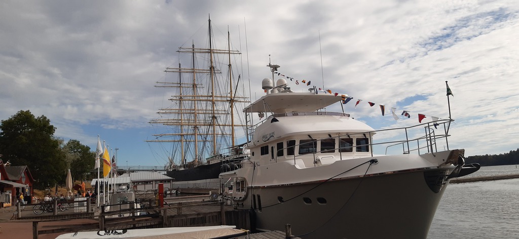 Am nächsten Tag begeben wir uns gemeinsam auf den Weg nach Mariehamn. Dort nehmen wir unsere reservierten Plätze in der West Marina ein. Nachmittags werden wir von dem reizenden Eignerpaar und neuen ICCY-Mitgliedern auf die Sweet Hope“ zur Schiffsbesichtigung eingeladen. Die Yacht wird ohne Personal, lediglich von dem Eignerpaar, vom Maschinenraum bis zur Brücke tip topp gepflegt. Wir sind alle sehr beeindruckt, doch tauschen möchte niemand!