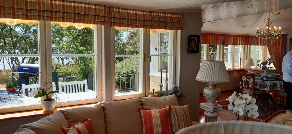 Anschließend bringt uns der Bus nach Andersudde in die noble Sommerresidenz des Ehrenbürgers der Ålands, Anders Wiklöf. Von der großzügigen Sommerresidenz aus hat man einen wunderschönen Ausblick auf die umliegenden Schären und Rödhamn. Der Hausherr persönlich stellt uns seine bewerkenswerte und umfangreiche Kunstsammlung mit vielen amüsanten Anekdoten vor. Leider nur in Schwedisch, sodass lediglich die finnischen und schwedischen Gäste den Ausführungen folgen können. Seine Sammelleidenschaft scheint bei weitem noch nicht gestillt zu sein, bei Platzmangel wird das Haus kurzerhand um einen weiteren Anbau vergrößert.