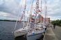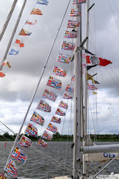 Warmen Schampus können wir nicht ausschenken, also wieder Kisten schleppen und andere Schiffe um Kühlung bitten. Männer das Zelt muss aufgebaut werden. Die Tüten müssen beklebt werden. Die Kisten mit den Präsenten von Bord in`s Zelt schleppen. Die Tüten packen, orange für die Mädels, blaue für die Buben. Flaggen falten und mit den Plaketten eintüten, Plaketten fehlen, kann nicht sein, kontrollieren, alles immer mal 70 zig. Die Namensschilder anbringen, noch mal orange Mädels, blau Buben, ist das ein weiblicher oder männlicher Vorname? Blaue Tüten fehlen…noch mal das Schiff durchsuchen…alles da. Heute qualmt mein Schrittzähler, die Handgelenkarthrose juchzt und ich lerne was „Rücken“ ist.