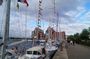 Und die Nacht ist es auch wieder, kurz. Keine Brötchen, dafür ruck zuck die Koje räumen, und die formale Kleidung nicht vergessen! Die Zeltstangen, Zeltsäcke, die Fahnenstangen, die Tische, alles muss wieder an Bord seefest gemacht werden. Und wer hilft beim ausräumen? Wir nicht. Dafür genießen wir zum Abschluss den tollen Brunch im Lokschuppen.