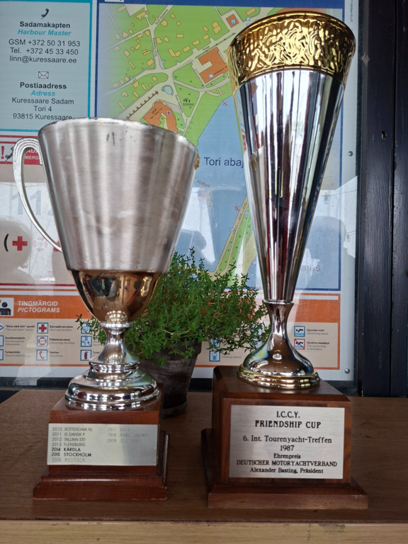 Die große ICCY-Flagge wurde Joni übergeben sowie die Pokale, die im Clubhaus vom HSK einen würdigen Platz bekommen werden. Joni lud uns ein, diese bei einem künftigen Besuch in Helsinki jederzeit besuchen zu können.