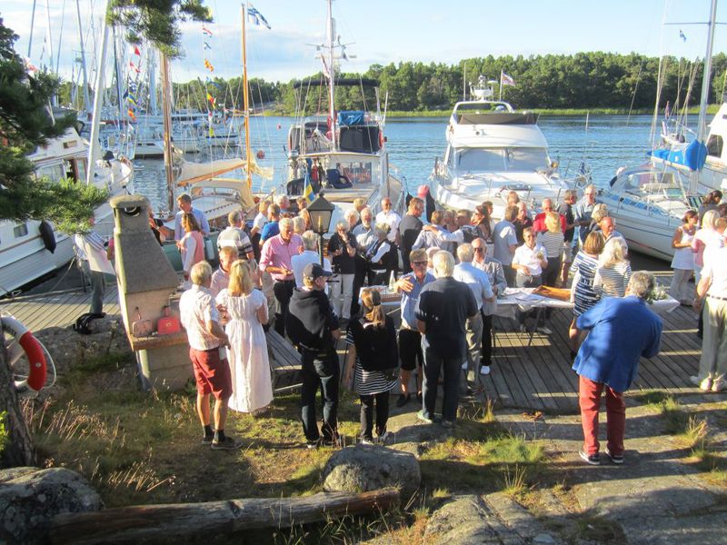 Es beginnt mit einer Einladung auf das wunderschöne Hogböte. Auch der Wettergott hatte pünktlich zu allen Veranstaltungen ein Einsehen und ließ die Sonne scheinen. Die Uhren gehen auf Hogböte langsamer. Man nimmt sich Zeit, genießt die Ruhe und die schöne Umgebung. Für den Abend wurde das neu gestaltete Partyzelt von den Mitgliedern des KMK liebevoll geschmückt, die Tische und Bänke gerückt, damit die vielen Gäste einen Platz bekommen. Am Abend brachte ein Partyservice das leckere Abendessen. Nach dem Essen wurde die Musik aufgedreht und getanzt. Es herrschte eine tolle Stimmung. Die Ankerlieger in den umliegenden Buchten, die von einem friedlichen, ruhigen Abend geträumt hatten, wurden enttäuscht.